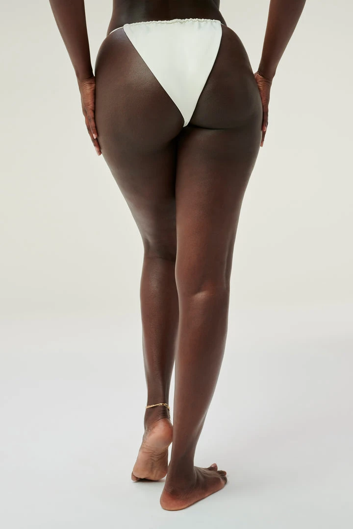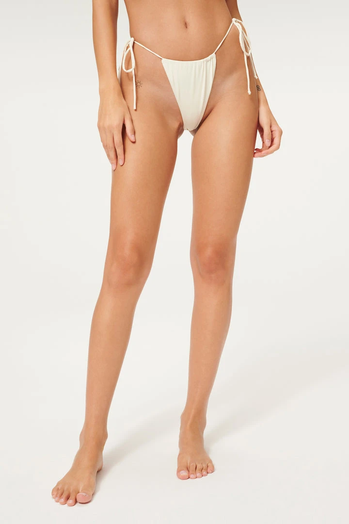 We made your favorite tiny bikini bottom even better with smaller a fixed waistband. Introducing the Tiny Ties Bottom. Made especially for when youโre working on that tan.