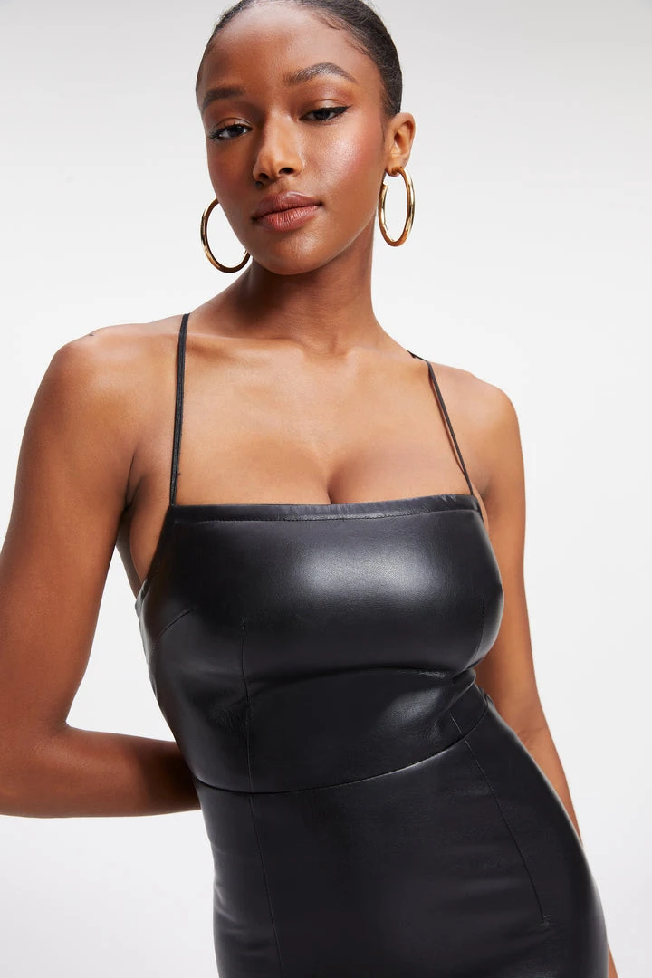 What’s Up, Legs? Whether you’re out to play or on vacay, the Better Than Leather Vacay Dress is a one and done situation. Lace up, and go off.