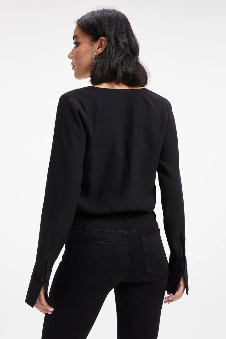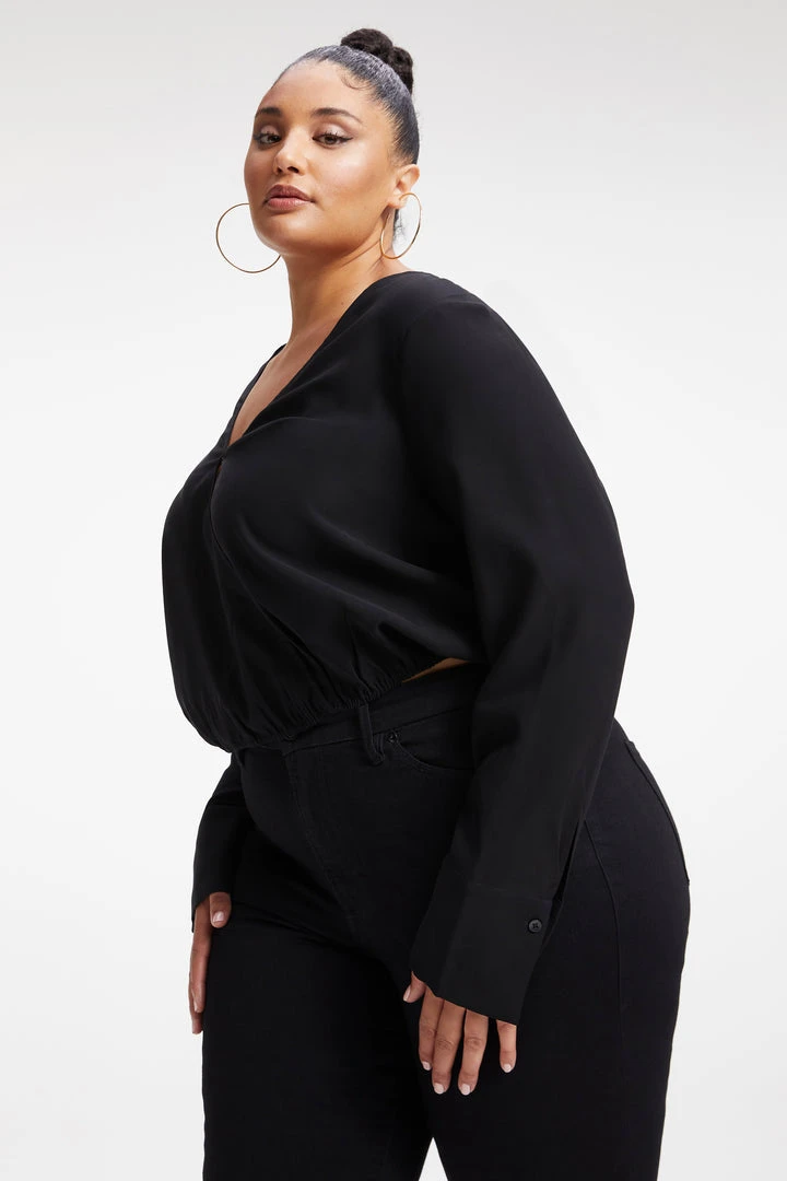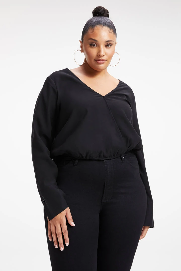 Designed to exude confidence, the Woven Wrap Top is your next go-to wardrobe staple. It deep v side wrap ruching, designed to define your figure and flatter every curve, and is made with the softest sculpting fabric that you’ll never want to take off. Pair with your favorite jeans to finish off the look.